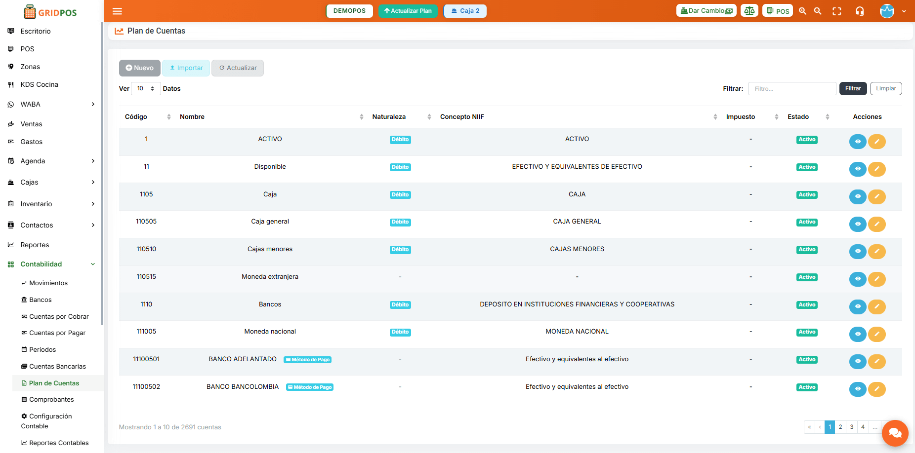 Configura cuentas, registra movimientos contables y controla saldos sin salir de GridPOS. Personaliza reglas por medios de pago, clientes, proveedores y tipos de gasto para reflejar tu operación.